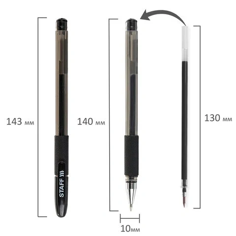 Ручка имеет круглый тонированный корпус и лаконичный дизайн. Детали ручки выполнены в цвет чернил - черный. Резиновый держатель обеспечит комфортное письмо на протяжении долгого времени. Сменный стержень длиной 130 мм со стандартным наконечником позволит использовать ручку максимально долго. Диаметр пишущего узла, равный 0,5 мм, создает линию письма, равную 0,35 мм. Цвет чернил - черный.
