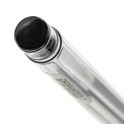 Имеет круглый прозрачный корпус, а детали ручки выполнены в цвет чернил - черный. Сменный стержень длиной 130 мм с игольчатым наконечником позволит использовать ручку максимально долго. Диаметр пишущего узла, равный 0,5 мм, создает линию письма, равную 0,35 мм.
