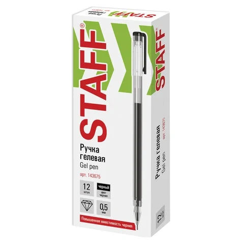 Ручка гелевая Staff Brilliant черная, 0.5мм, одноразовая