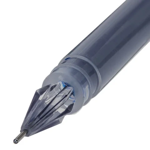 Ручка имеет круглый прозрачный корпус и лаконичный дизайн. Бесстержневая одноразовая ручка с чернилами, которые находятся прямо внутри корпуса. Благодаря повышенной вместимости чернил длина письма составляет 1000 м, что позволит использовать ручку максимально долго. Игольчатый наконечник в форме бриллианта. Диаметр игольчатого пишущего узла, равный 0,5 мм, создает тонкую линию письма, равную 0,35 мм. Цвет чернил - синий.