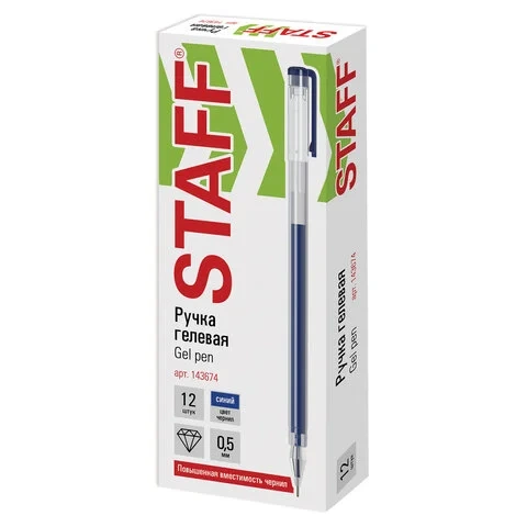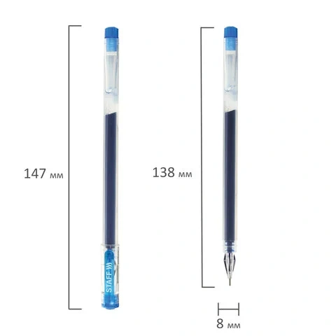 Ручка гелевая Staff Brilliant синяя, 0.5м, одноразовая