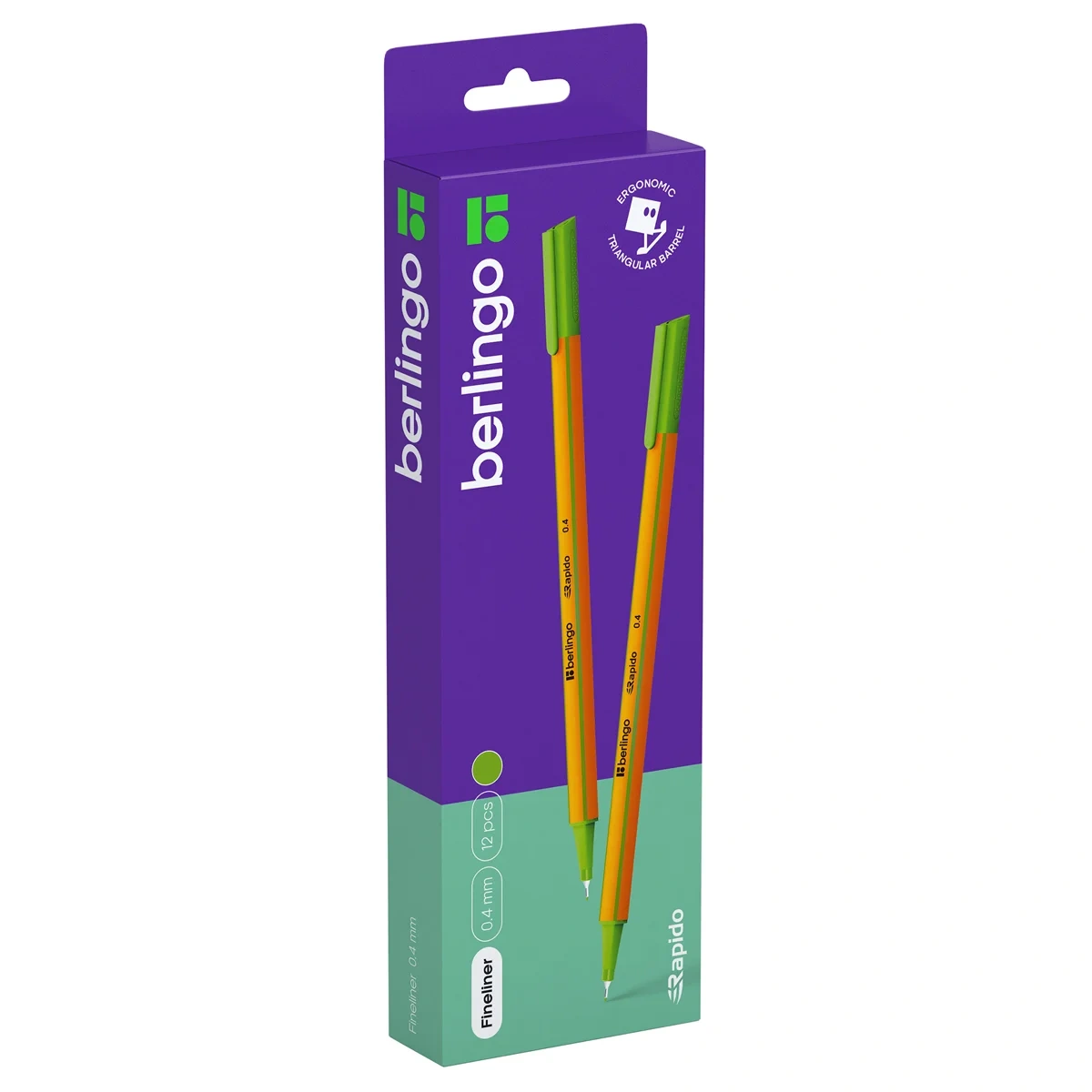 Ручка капиллярная Berlingo Rapido светло-зеленая, 0.4мм, желтый корпус