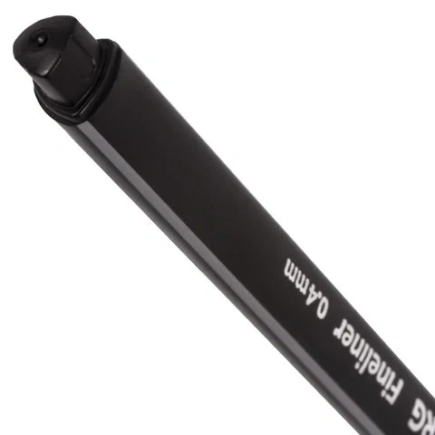 Ручка капилярная черного цвета имеет трехгранную форму корпуса, диаметр которого 9 мм. Благодаря такой форме корпуса изделие удобно располагать в руке. Супер тонкий износостойкий металлический наконечник 0,4 мм идеально подходит для создания точных и аккуратных линий. Цвет корпуса и колпачка соответствует цвету чернил.