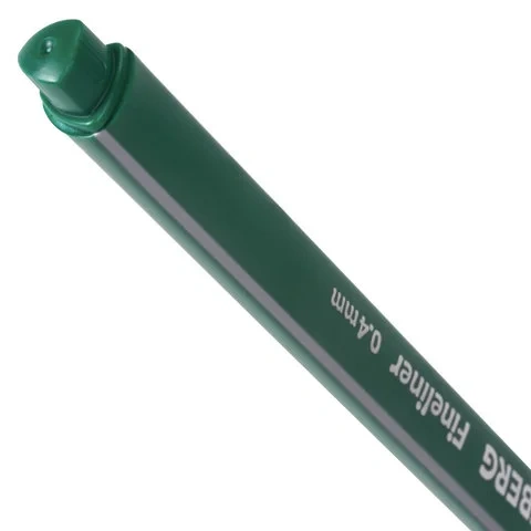 Ручка капилярная темно-зеленого цвета имеет трехгранную форму корпуса, диаметр которого 9 мм. Благодаря такой форме корпуса изделие удобно располагать в руке. Супертонкий износостойкий металлический наконечник 0,4 мм идеально подходит для создания точных и аккуратных линий. Цвет корпуса и колпачка соответствует цвету темно-зеленых чернил.