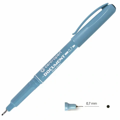 Ручка капиллярная Centropen Document 2631 черная, 0.7мм, голубой корпус