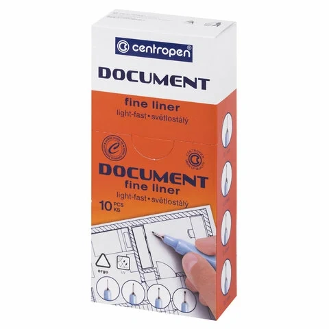 Ручка капиллярная Centropen Document 2631 черная, 0.3мм, голубой корпус