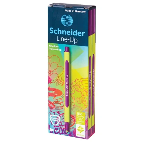 Капиллярная ручка Schneider Line-Up в ярком дизайне. Диаметр пишущего узла ручки составляет 0,4 мм, толщина линии письма – 0,4 мм. В упаковке 10 ручек малинового цвета. Капиллярная ручка предназначена для письма, рисования, раскрашивания и черчения. Она может находиться без колпачка до 3-х дней и не высыхает. Эргономичный трехгранный прорезиненный корпус салатового цвета изготовлен из инновационного пластика на биооснове. Цвет элементов корпуса соответствует малиновому цвету чернил. Письменные принадлежности Schneider разрабатываются и производятся только в Германии, их отличают функциональный дизайн, безупречное качество, надежность и экологичность.