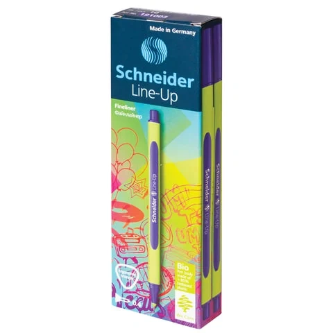 Капиллярная ручка Schneider Line-Up в ярком дизайне. Диаметр пишущего узла ручки составляет 0,4 мм, толщина линии письма – 0,4 мм. В упаковке 10 ручек синего цвета. Капиллярная ручка предназначена для письма, рисования, раскрашивания и черчения. Она может находиться без колпачка до 3-х дней и не высыхает. Эргономичный трехгранный прорезиненный корпус салатового цвета изготовлен из инновационного пластика на биооснове. Цвет элементов корпуса соответствует цвету чернил. Письменные принадлежности Schneider разрабатываются и производятся только в Германии, их отличают функциональный дизайн, безупречное качество, надежность и экологичность.