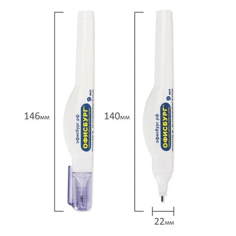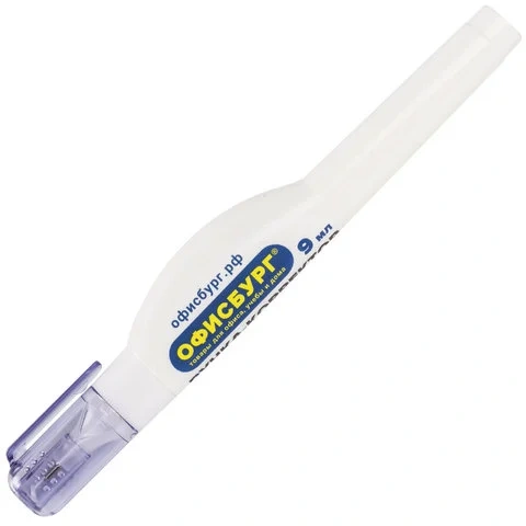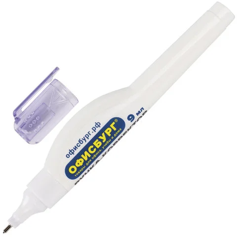 Быстросохнущая корректирующая ручка на спиртовой основе имеет объем 9 мл и обладает устойчивостью к морозу. Корректор оснащен клапанным механизмом, и подача жидкости осуществляется с помощью нажатия на наконечник ручки. Перед началом использования ОБЯЗАТЕЛЬНО встряхните ручку. Не оказывайте на корпус ручки повышенное физическое давление, за исключением случаев, когда ручкой давно не пользовались.