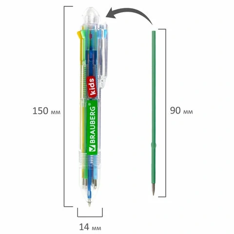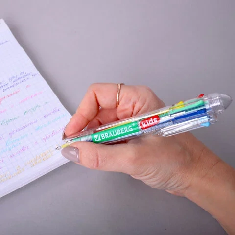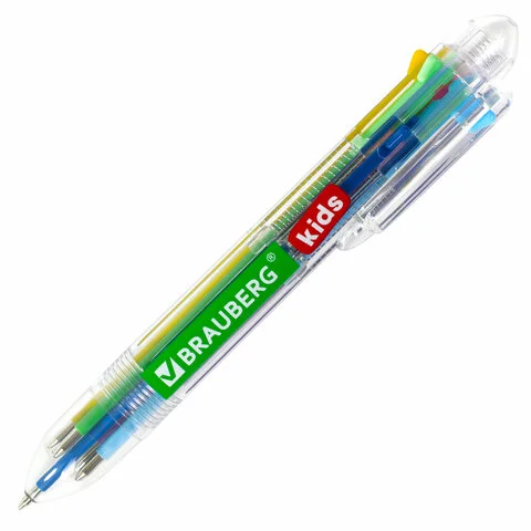 Шариковая ручка автоматическая Brauberg Kids 8 цветов, 0.35мм, прозрачный корпус, в блистере