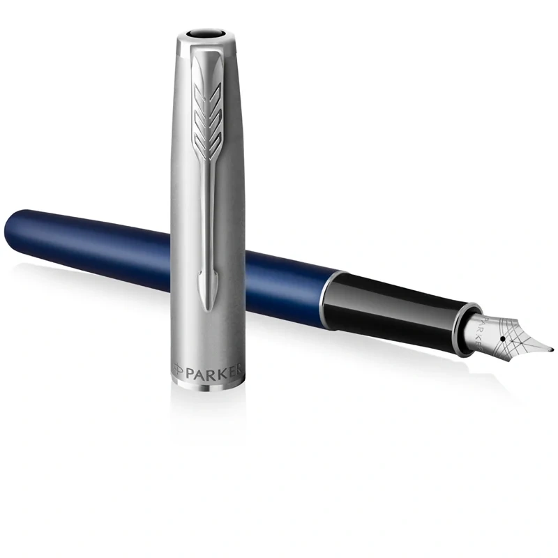 Ручка перьевая Parker 'Sonnet Sand Blasted Metal&Blue Lacquer' черная, 0,8мм, подар. уп.