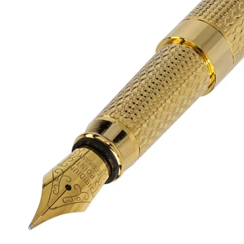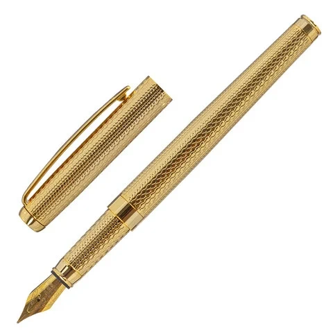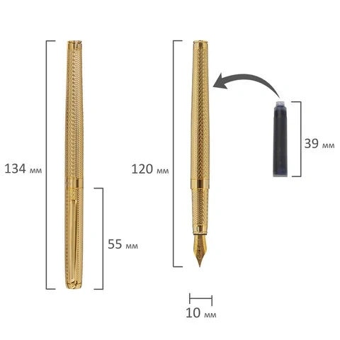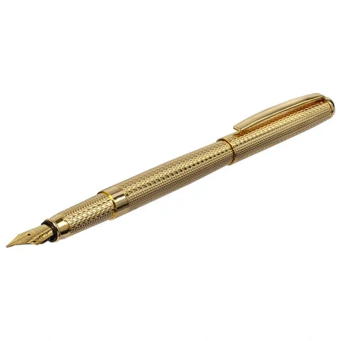 Роскошная модель перьевой ручки с корпусом из латуни золотистого цвета и декоративной гравировкой на корпусе. Синий цвет чернил; иридиевое перо украшено гравировкой. Диаметр пишущего узла – 0,8 мм. Тип пера M (Medium) – средняя ширина линии. Поставляется в индивидуальном подарочном футляре. Подходит для гравировки.
