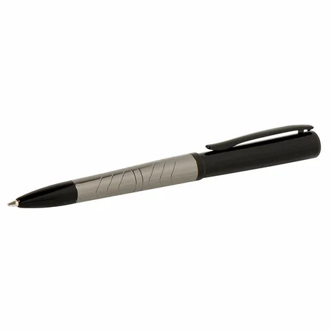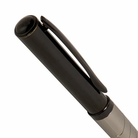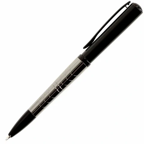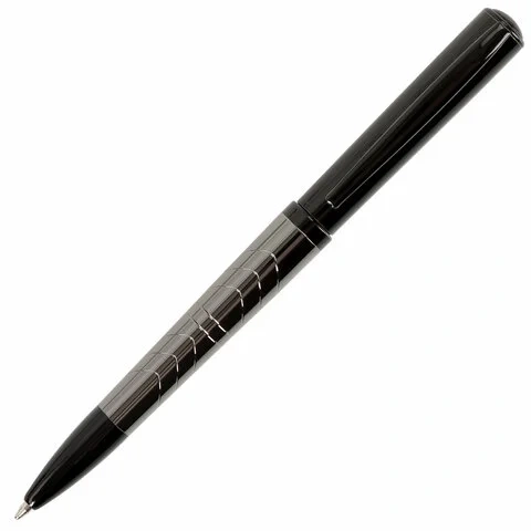 Утонченная модель ручки с корпусом из латуни цвета оружейного металла с черными деталями и декоративным узором. Синий цвет чернил; длина стержня составляет 98 мм, а диаметр пишущего узла - 0,7 мм. Поставляется в индивидуальном подарочном футляре.