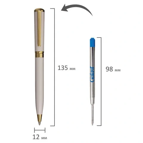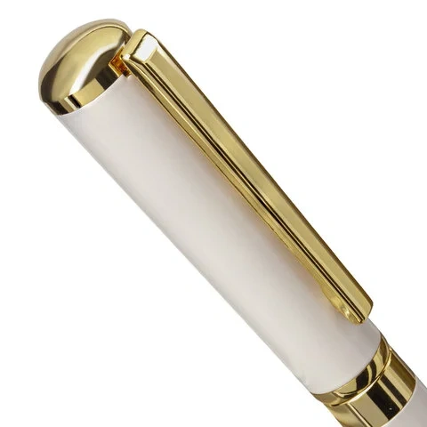 Элегантная модель ручки с корпусом из латуни жемчужно-розового цвета и золотыми деталями. Синий цвет чернил; длина стержня составляет 98 мм, а диаметр пишущего узла - 0,7 мм. Поставляется в индивидуальном подарочном футляре.