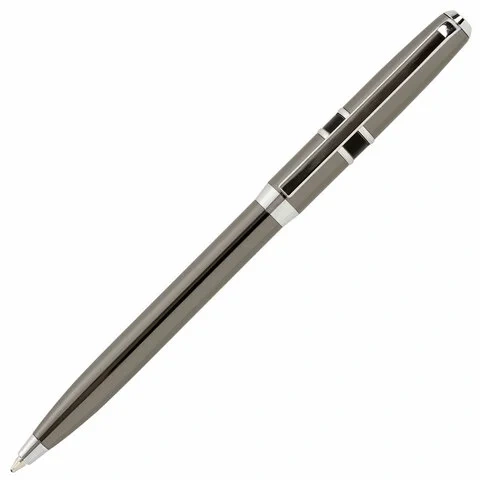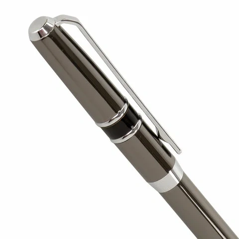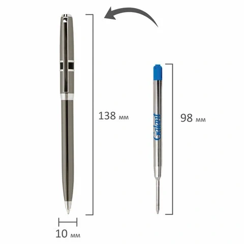 Утонченная модель ручки с корпусом из латуни цвета оружейного металла с хромированными деталями. Синий цвет чернил; длина стержня составляет 98 мм, а диаметр пишущего узла - 0,7 мм. Поставляется в индивидуальном подарочном футляре.