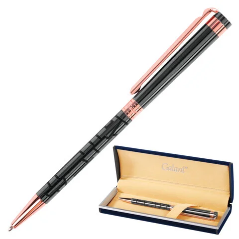 Корпус ручки с золотисто-черными вставками выполнен из латуни. Синий цвет чернил, длина стержня составляет 98 мм, а диаметр пишущего узла - 0,7 мм. Поставляется в индивидуальном подарочном футляре.