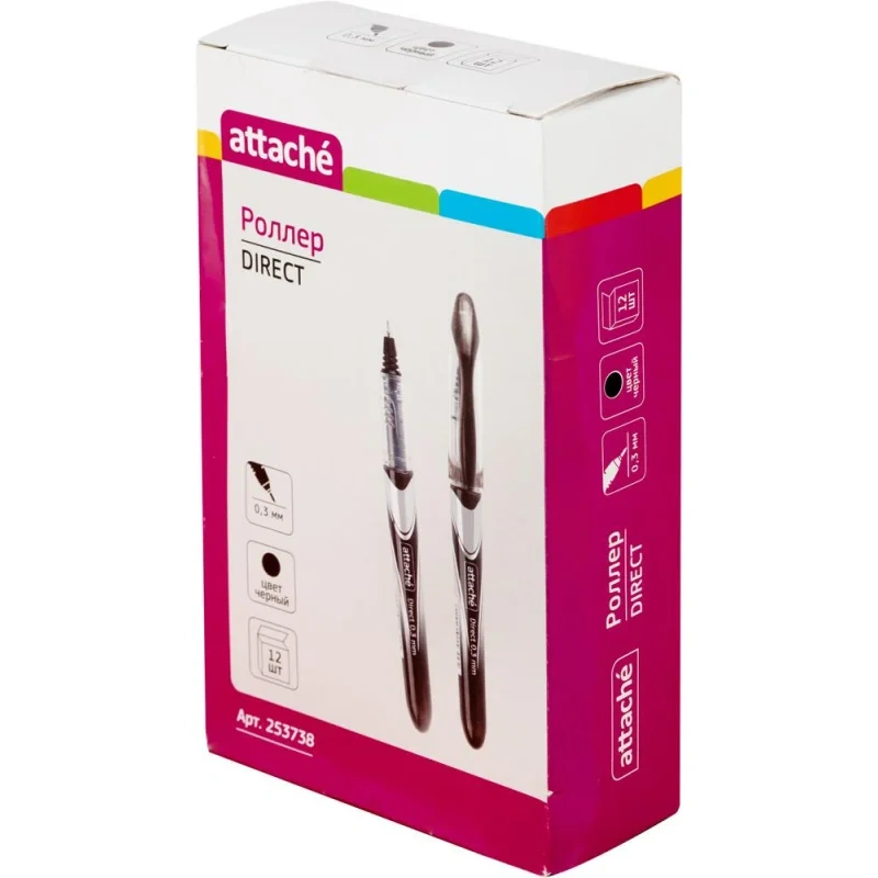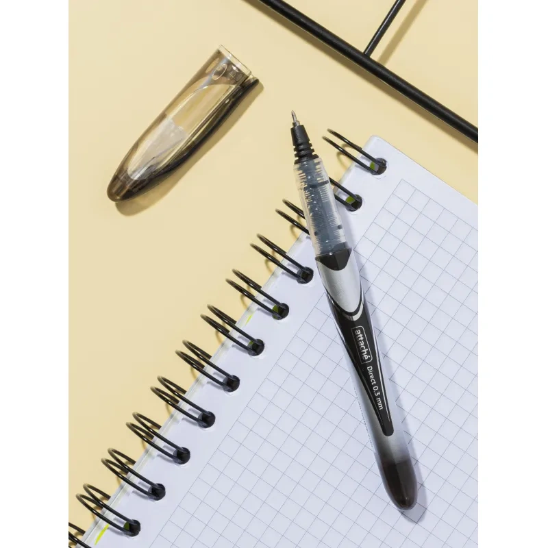 Одноразовая ручка-роллер Attache Direct в пластиковом корпусе с колпачком. Тонкий игольчатый наконечник с толщиной линии письма 0,3 мм. Чернила на водной основе черного цвета. Клип на колпачке позволяет крепить роллер к одежде. Прозрачная манжетка надежно защищает от протекания чернил. При изменении температурного режима возможно накапливание чернил под манжеткой роллера. Возможности смены стержня нет.