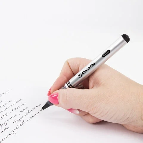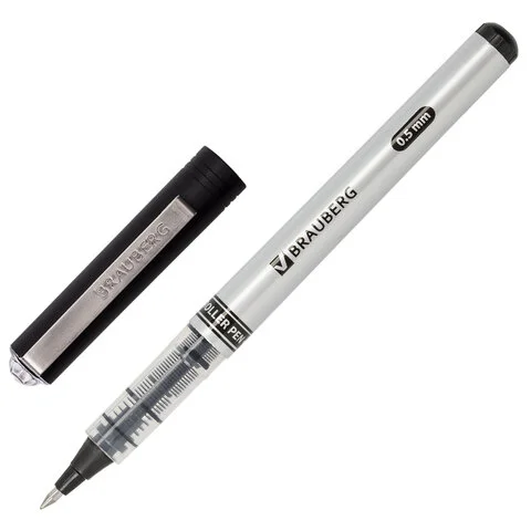 Ручка-роллер Brauberg Flagman черная, 0.3мм, серебристый корпус