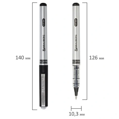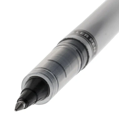 Имеет круглый корпус серебристого цвета с печатью и стандартный наконечник. Цвет деталей соответствует цвету чернил. Конусообразный пишущий узел толщиной 0,5 мм создает линию письма, равную 0,3 мм. Имеется окошко для проверки уровня чернил. Подходит для письма на копиях, сделанных под копирку. Цвет чернил - черный.