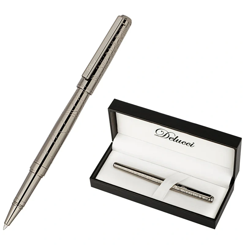 Ручка-роллер Delucci 'Mistico', черная, 0,6мм, корпус оружейный металл, подар.уп.