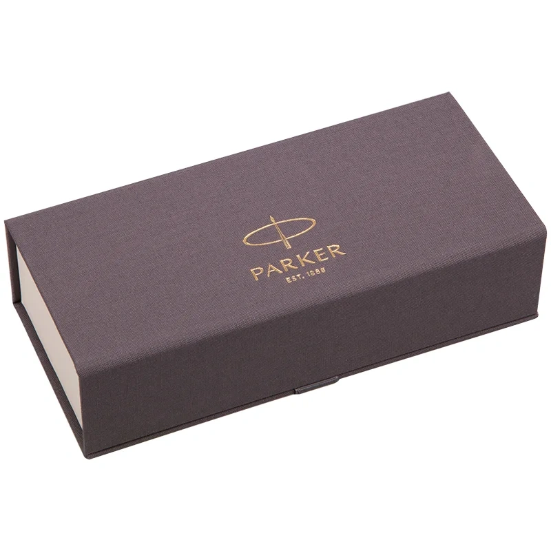Роллер в корпусе из нержавеющей стали с матовым лаковым покрытием с сатиновым эффектом и декоративными элементами, покрытыми золотом. ВНИМАНИЕ! С марта 2020г. подарочные коробки ручек ТМ Parker прекратили комплектоваться лифлетами (листовками с гарантийным талоном).