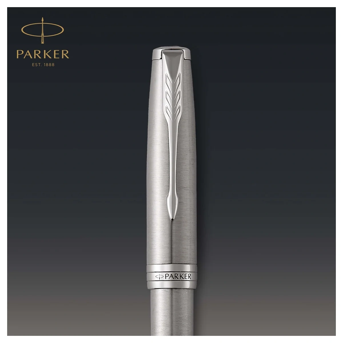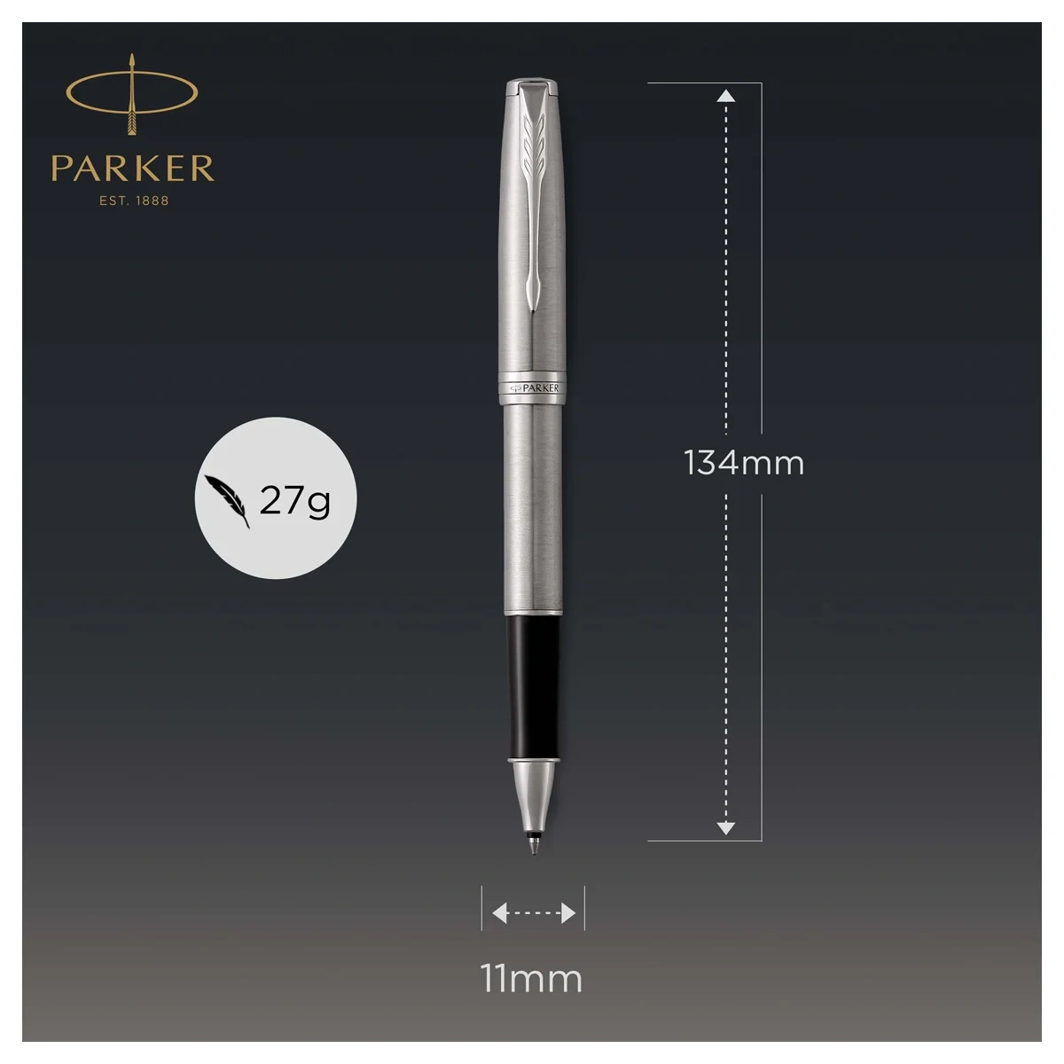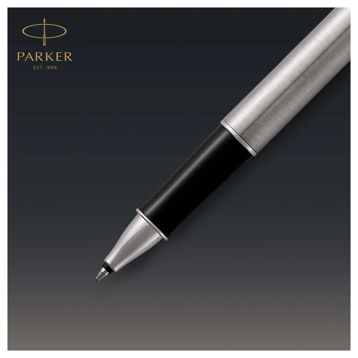 Роллер в корпусе из шлифованной нержавеющей стали и декоративными элементами, покрытыми палладием. ВНИМАНИЕ! С марта 2020г. подарочные коробки ручек ТМ Parker прекратили комплектоваться лифлетами (листовками с гарантийным талоном).