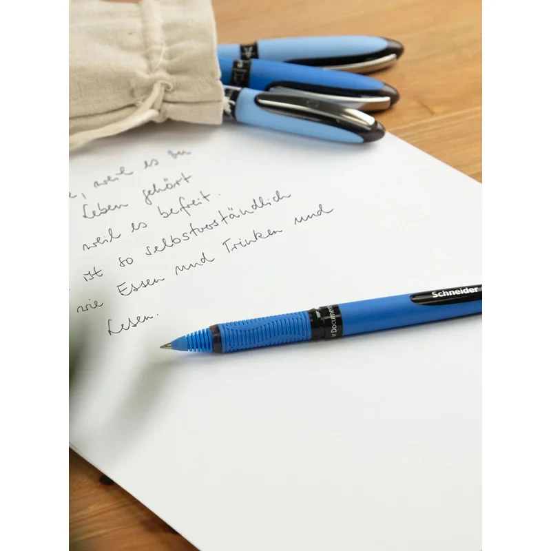 Ручка-роллер Schneider One Hybrid C с круглым прорезиненным корпусом и металлическим клипом. Диаметр пишущего узла ручки составляет 0,5 мм, толщина линии письма – 0,3 мм. Длина письма может достигать 2200 метров! Удобный чернильный роллер с окном-индикатором отстатка чернил. Цвет корпуса соответствует синему цвету чернил. Быстросохнущие, свето- и водоустойчивые чернила соответствуют международному стандарту качества ISO 14145-2 и отлично подходят для заполнения и подписи документов. Письменные принадлежности Schneider разрабатываются и производятся только в Германии.