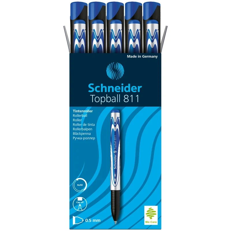 Ручка-роллер Schneider Topball 811 синяя, 0.7мм, серебристый корпус