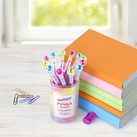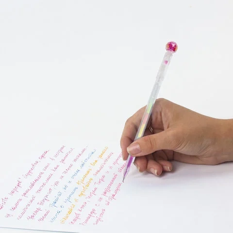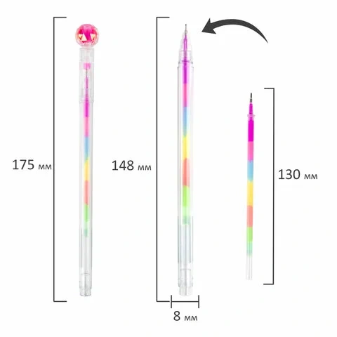 Гелевая ручка серии FUNNY YUMMY с ярким корпусом и оригинальным дизайном топперов в виде хрустального шара. Благодаря привлекательному дизайну и радужным чернилам ее не захочется выпускать из рук. Диаметр стандартного пишущего узла, равный 0,7 мм, создает линию письма, равную 0,35 мм. Длина сменного стержня составляет 130 мм. Цвет чернил - ассорти.