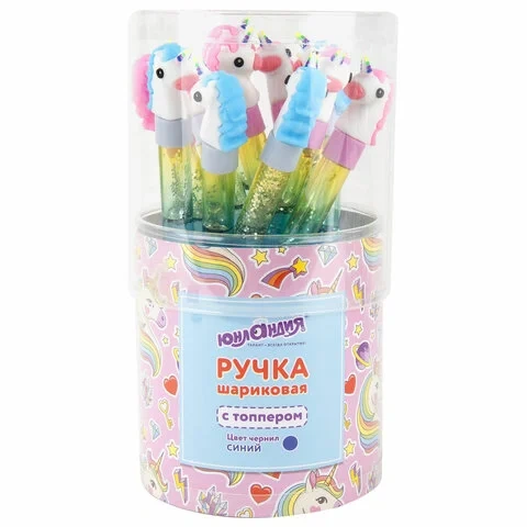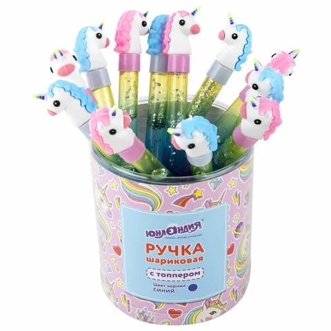 Ручка шариковая Юнландия Единорог синяя, 0.35мм, корпус ассорти