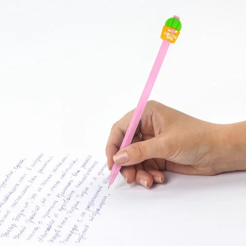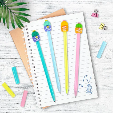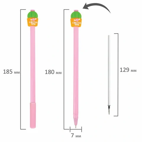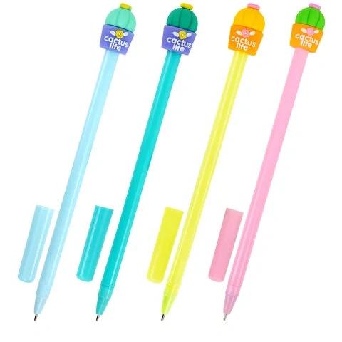 Шариковая ручка серии FUNNY YUMMY с ярким корпусом и оригинальным дизайном топперов в виде кактуса. Благодаря привлекательному дизайну ее не захочется выпускать из рук, а чернила на масляной основе обеспечат мягкое плавное письмо. Диаметр игольчатого пишущего узла, равный 0,7 мм, создает линию письма, равную 0,35 мм. Длина сменного стержня составляет 129 мм. Цвет чернил - синий.