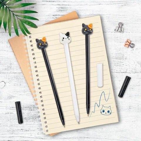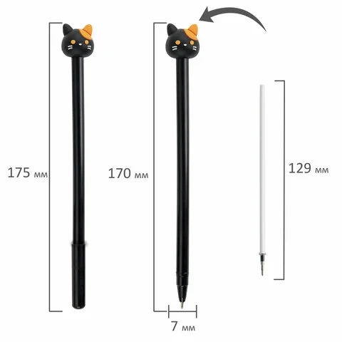 Шариковая ручка серии FUNNY YUMMY с ярким корпусом и оригинальным дизайном топперов в виде кошки. Благодаря привлекательному дизайну ее не захочется выпускать из рук, а чернила на масляной основе обеспечат мягкое плавное письмо. Диаметр игольчатого пишущего узла, равный 0,7 мм, создает линию письма, равную 0,35 мм. Длина сменного стержня составляет 129 мм. Цвет чернил - синий.