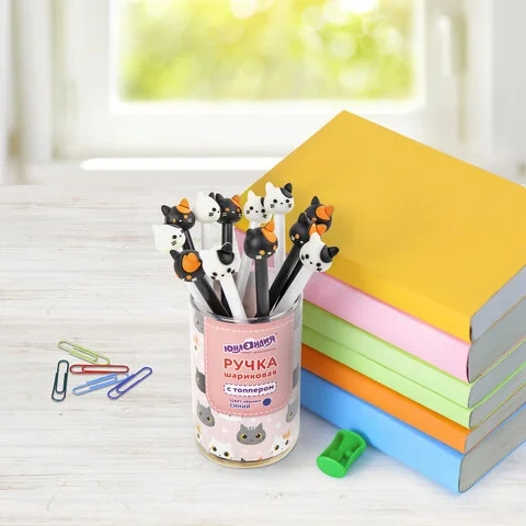 Ручка шариковая Юнландия Кошка синяя, 0.35мм, корпус ассорти