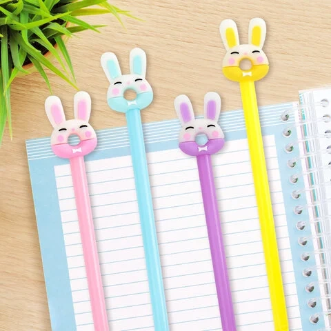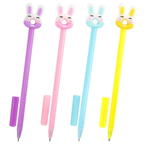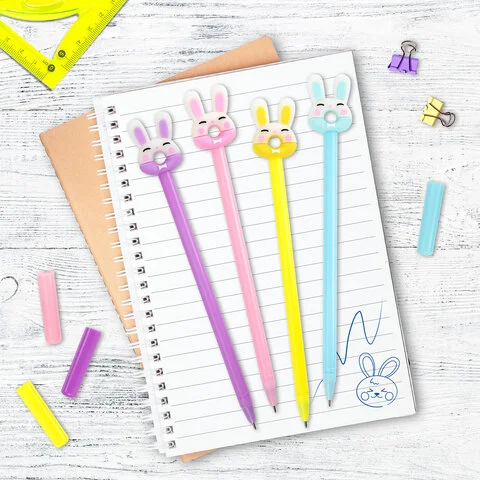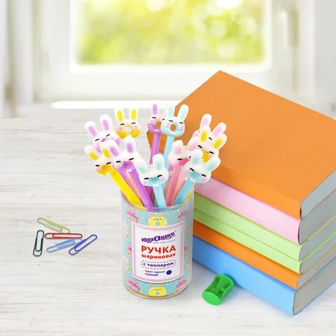 Ручка шариковая Юнландия Зайка-пончик синяя, 0.35мм, корпус ассорти