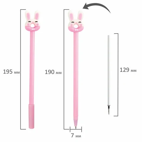 Шариковая ручка серии FUNNY YUMMY с корпусом нежных тонов и оригинальным дизайном топперов в виде зайки-пончика. Благодаря привлекательному дизайну ее не захочется выпускать из рук, а чернила на масляной основе обеспечат мягкое плавное письмо. Диаметр игольчатого пишущего узла, равный 0,7 мм, создает линию письма, равную 0,35 мм. Длина сменного стержня составляет 129 мм. Цвет чернил - синий.