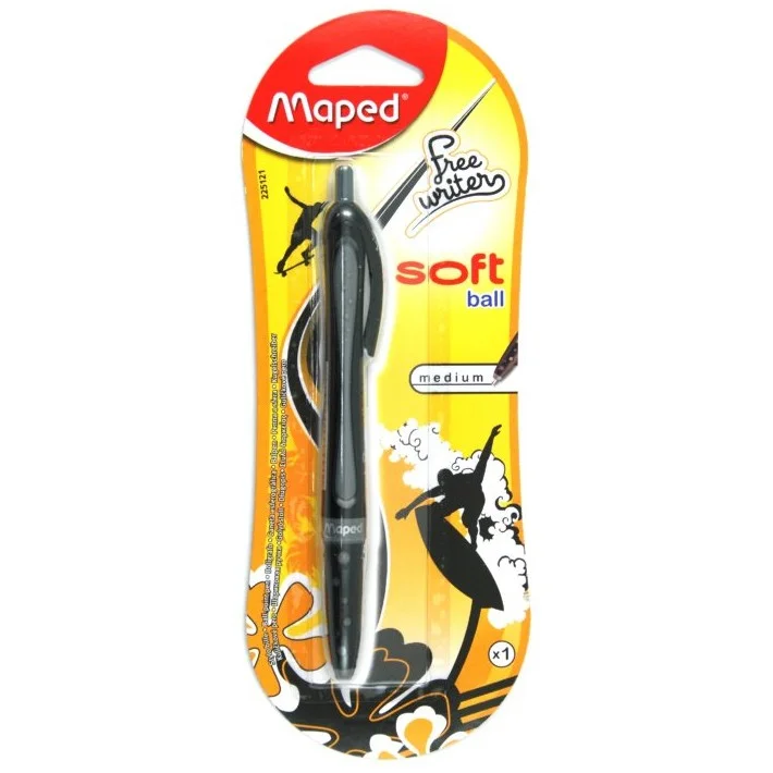 Шариковая ручка автоматическая Maped Soft Ball черная, 0.7мм, черный корпус