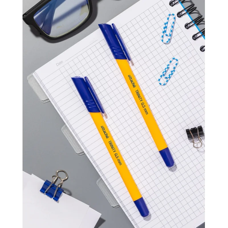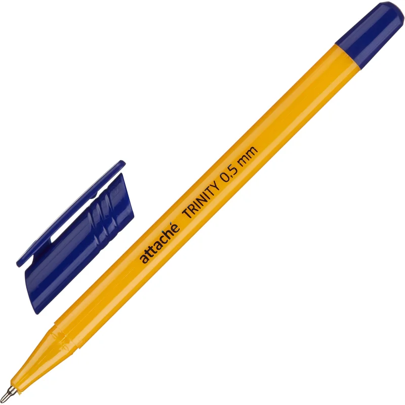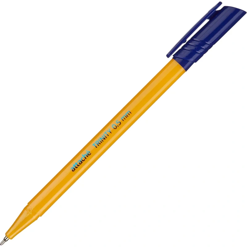 Ручка шариковая Attache Economy Trinity синяя - это функциональная модель, сочетающая в себе классику формы и цвета! Модель выполнена в желтом пластиковом корпусе с вентилируемым колпачком и заглушкой синего цвета. Эргономичный трехгранный корпус обеспечивает правильное положение руки и комфорт при письме. Сменный стержень длиной 138 мм заправлен чернилами синего цвета, снабжен конусообразным наконечником диаметром 0,7 мм, который обеспечивает тонкую линию письма 0,5 мм. Ручка обеспечивает легкое и мягкое письмо, яркие и насыщенные линии. Ручка Attache Economy Trinity - это предмет, который всегда должен быть под рукой: во время важных переговоров в офисе, на диктанте в школе, во время лекции в ВУЗе и даже дома!