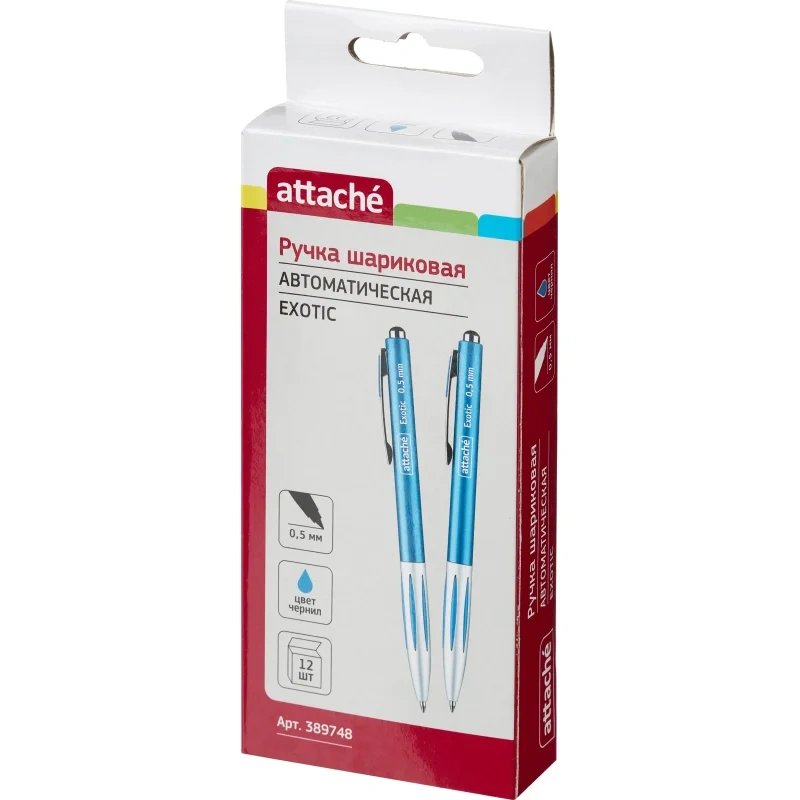 Шариковая ручка автоматическая Attache Exotic синяя, 0.5мм, синий корпус