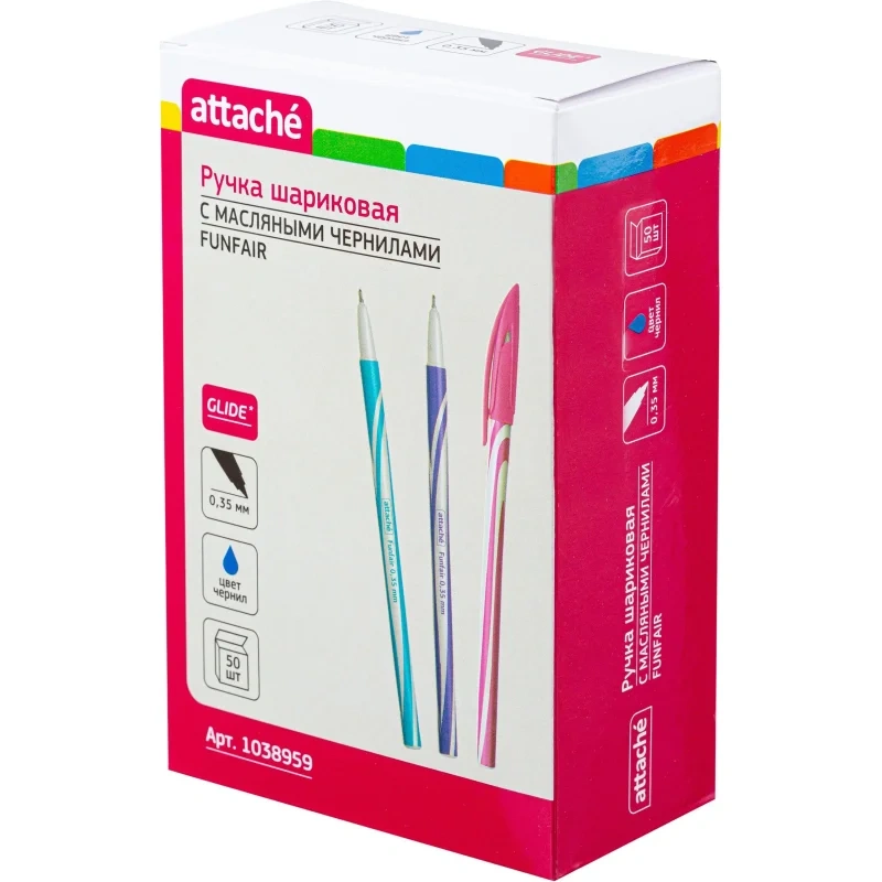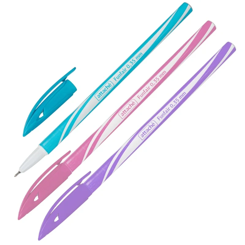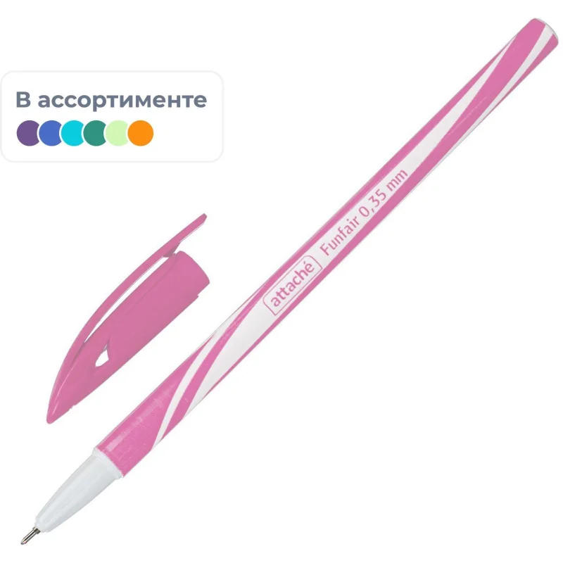 Корпус покрыт яркой фольгой, которая сочетается с цветным колпачком. Одноразовый стержень заправлен высококачественными синими масляными чернилами низкой вязкости. Игольчатый наконечник диаметром 0,5 мм обеспечивает тонкую линию письма 0,35 мм. За счет особого расположения шарика пишущего узла ручка идеально подходит для письма как правой, так и левой рукой. Длина стержня — 142 мм. Сочетание уникальных технологий производства чернил и пишущего узла позволяет писать на 20% дольше без пропусков и помарок при минимальном давлении на ручку. Внимание! Товар поставляется в нескольких вариантах цвета/дизайна (без возможности выбора). Ручка шариковая Attache Funfair — отличный вариант для ежедневного использования в офисе или дома.
