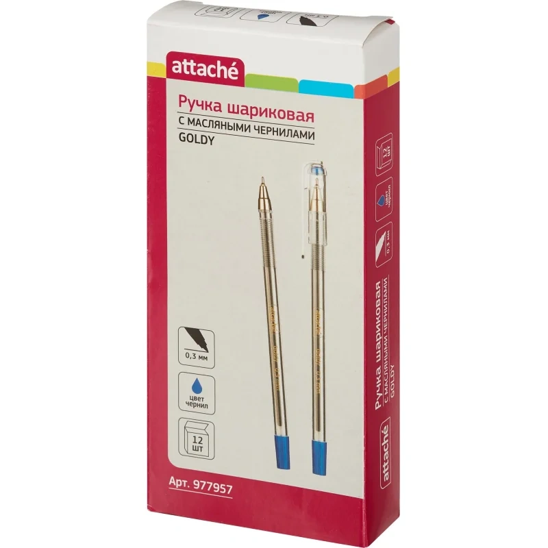 Шариковая ручка Attache Goldy синяя, 0.3мм, масляная, без манжеты