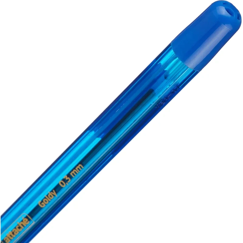 Модель выполнена в пластиковом прозрачном корпусе с колпачком и металлизированным наконечником золотистого цвета. Прозрачный корпус позволяет следить за расходом чернил. Ручка снабжена резиновой манжеткой для удобного захвата во время письма. Игольчатый наконечник диаметром 0,7 мм в сочетании с высококачественными масляными чернилами синего цвета обеспечивает яркое аккуратно письмо с толщиной линии 0,3 мм. Сменный стержень длиной 142 мм. Ручка шариковая Attache Goldy — отличный вариант для ежедневного использования в офисе или дома.