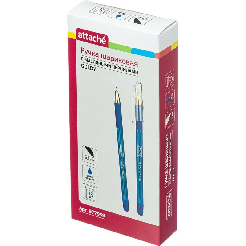 Ручка шариковая Attache Goldy синяя, 0.3мм, масляная, с манжетой