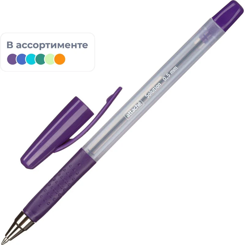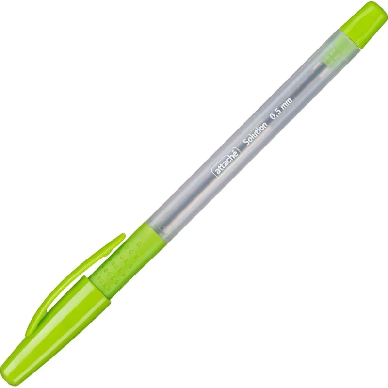 Ручка шариковая Attache Solution - это яркий и запоминающийся дизайн! Модель выполнена в эргономичном пластиковом корпусе с деталями ярких цветов. Стильный дизайн ручки дополняет клип, позволяющий закрепить ручку в кармане или тетради для записей. Трехгранная форма корпуса и резиновая манжетка придают ощущение комфорта при письме, способствуют надежному захвату пальцев и препятствуют выскальзыванию. Прозрачный матовый корпус позволяет контролировать расход чернил. Сменный стержень длиной 142 мм заправлен чернилами синего цвета, снабжен конусообразным наконечником диаметром 0,7 мм, который обеспечивает тонкую линию письма 0,5 мм. Ручка обеспечивает легкое и мягкое письмо, яркие и насыщенные линии. Товар поставляется в нескольких вариантах цвета (без возможности выбора). Ручка Attache Solution - идеально подойдет для использования в офисе, школе.