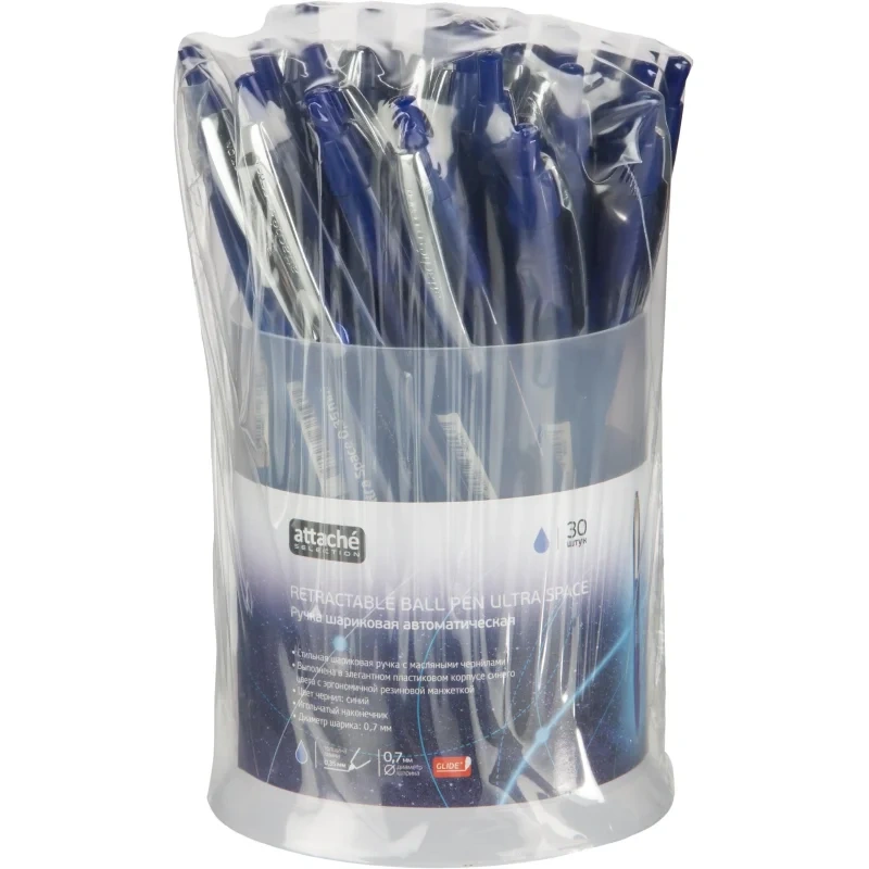 Шариковая ручка автоматическая Attache Ultra Space синяя, 0.3мм, синий корпус