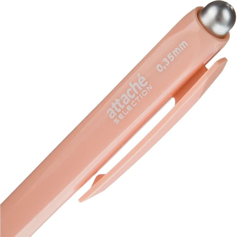 Ручка шариковая автомат. Attache SelectionFlora0,35,син,масл,манж,асс Ручка шариковая автоматическая Attache Selection Flora изготовлена из пластика пастельных оттенков с контрастными деталями серебристого цвета. Сменный стержень длиной 107 мм заправлен высококачественными масляными чернилами синего цвета. Резиновая манжетка в цвет корпуса способствует надежному захвату пальцев и препятствует выскальзыванию. Диаметр пишущего узла 0.5 мм создает линию письма, равную 0.35 мм. Форма наконечника: игольчатая. Внимание. Товар поставляется в нескольких цветовых решениях (без возможности выбора).