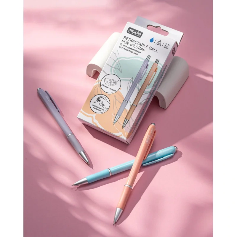 Шариковая ручка автоматическая Attache Flora синяя, 0.35мм, корпус ассорти