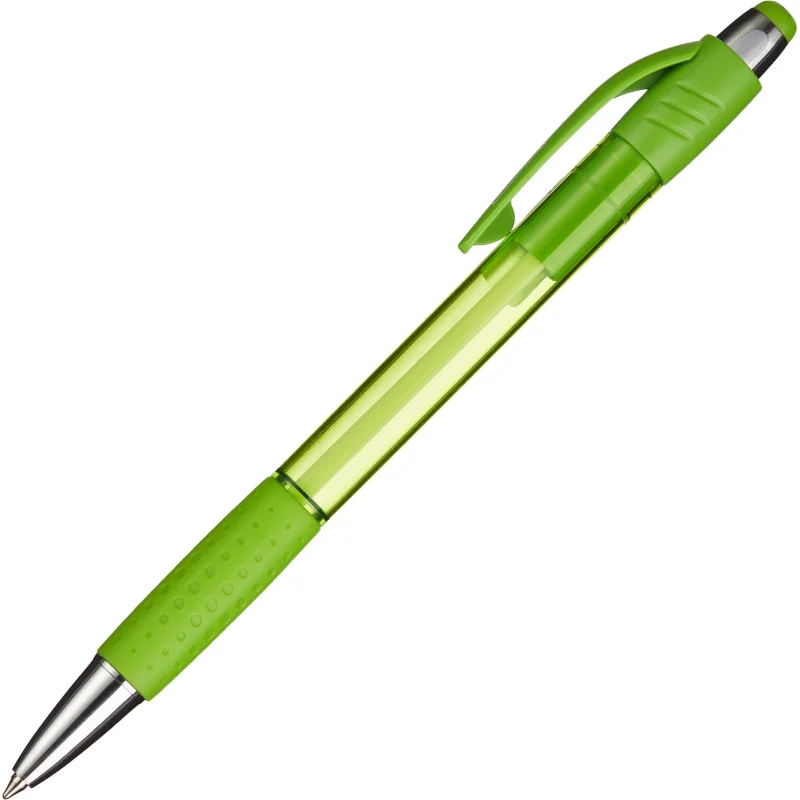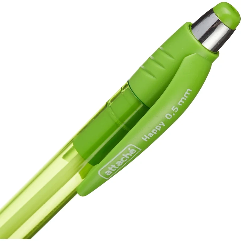Автоматическая шариковая ручка Attache Happy в традиционном пластиковом корпусе с яркой резиновой манжеткой.