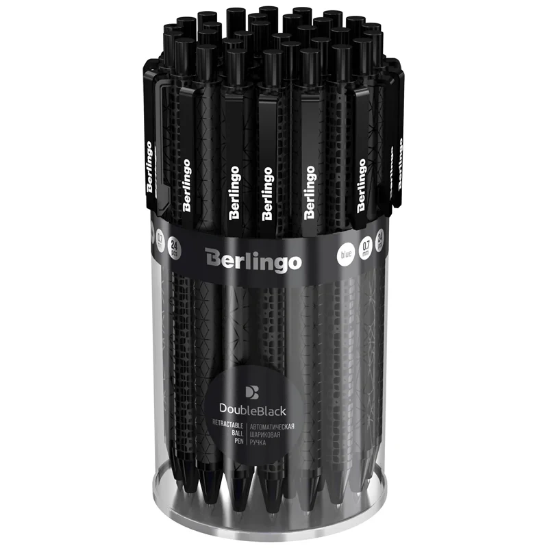 Ручка шариковая автоматическая Berlingo 'DoubleBlack' синяя, 0,7мм, игольчатый стержень