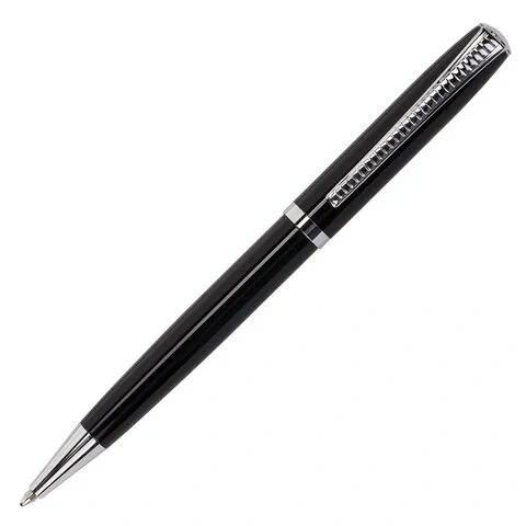Черный корпус выполнен из металла и декорирован серебряными деталями. Стержень типа 'Parker' имеет длину 98 мм. Диаметр пишущего узла, равный 1 мм, создает линию письма, равную 0,7 мм. Поворотный механизм обеспечивает надёжность при использовании ручки. Возможно нанесение логотипа. Поставляется в фирменной коробке.