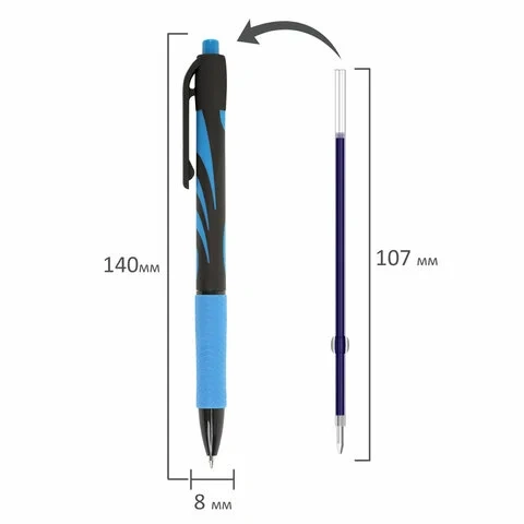 Имеет стильный, ярких неоновых цветов ассорти, корпус с резиновым упором в зоне захвата для удобства письма. Укомплектована стержнем синего цвета длиной 107 мм со стандартным наконечником. Диаметр пишущего узла 0,7 мм создает линию письма, равную 0,35 мм. Цвет чернил – синий.